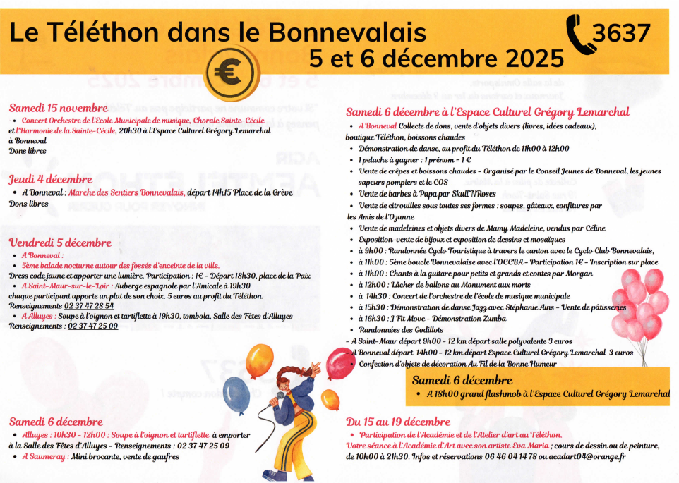 Pour donner le coup d'envoi du Téléthon 2025 à Bonneval rendez-vous vendredi 5 Décembre pour la Balade Nocturne conviviale et solidaire autour des fossés d'enceinte de la ville.
